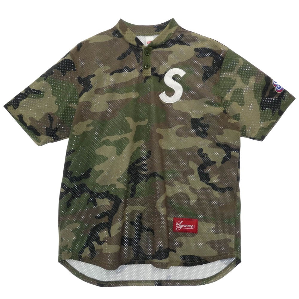 Supreme シュプリーム Tシャツ 24AW S Logo Baseball Henley エス ロゴ ヘンリー 半袖 ベースボール シャツ ウッドランドカモ カーキ系 マルチカラー系 M【極上美品】【中古】