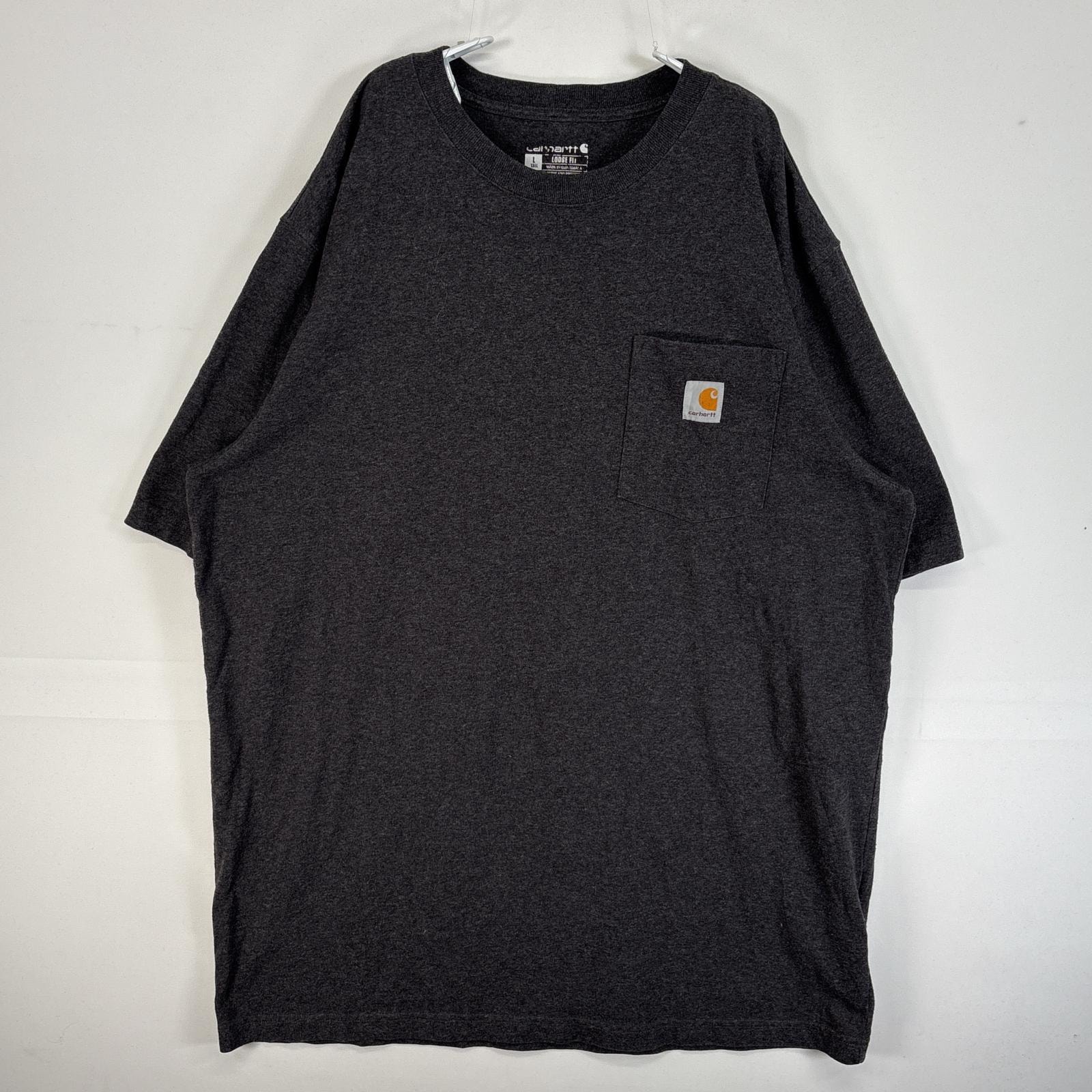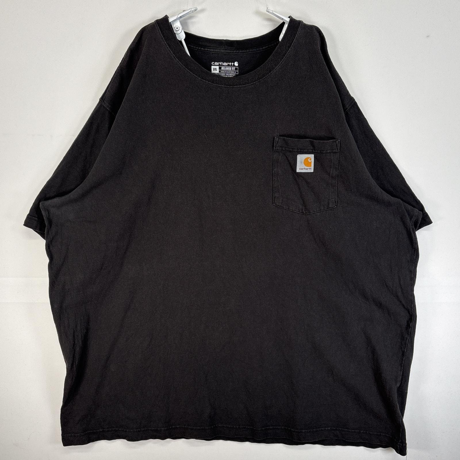 古着 カーハート Carhartt 半袖Tシャツ 大きいサイズ 肉厚 フェード 胸ポケ ワンポイント ロゴ 3XL ブラック 無地 メンズ
