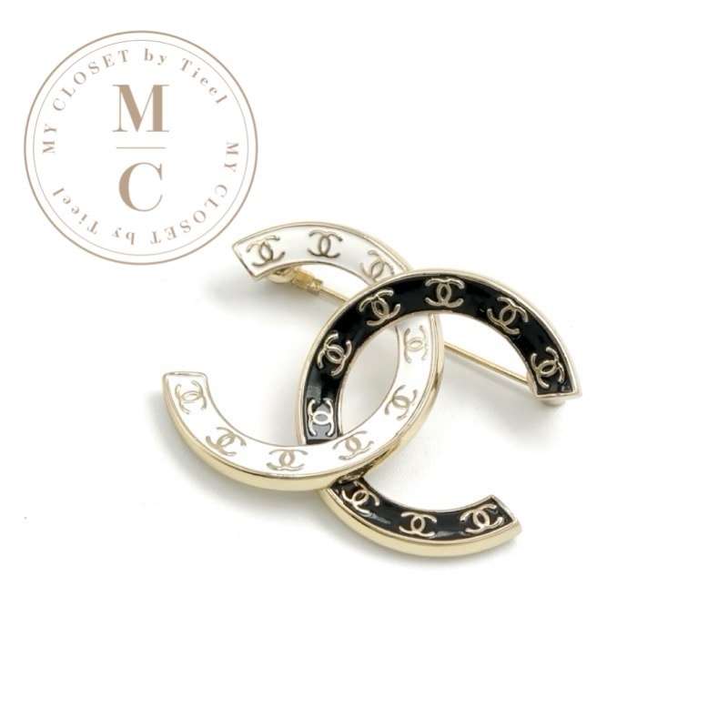 シャネル CHANEL ブローチ コサージュ ブラック ホワイト ゴールド ココマーク ロゴ バイカラー