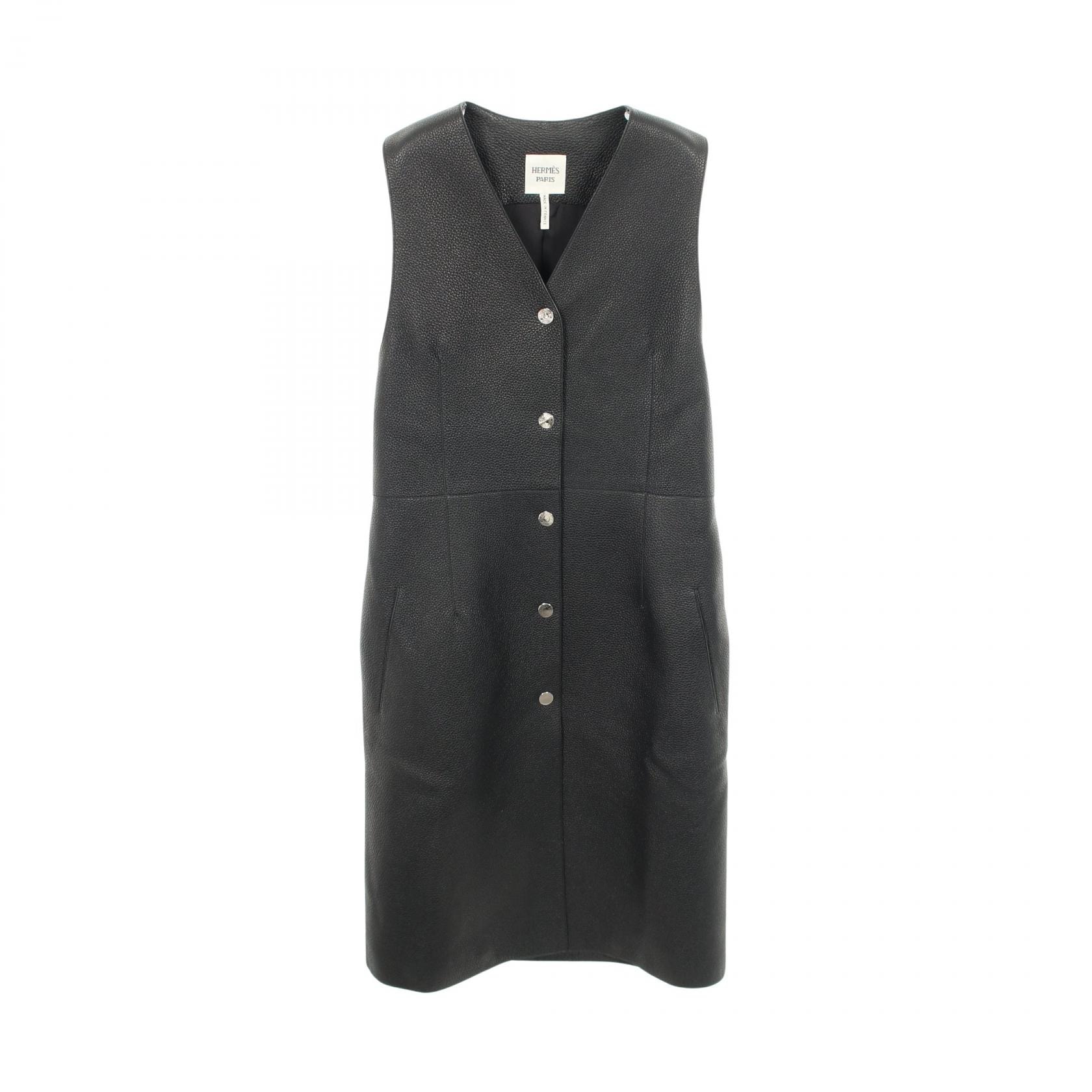 エルメス HERMES セリエボタン ロングジレ ベスト 衣料品 トップス ディアスキン レディース ブラック系 4E1207D2 【中古】