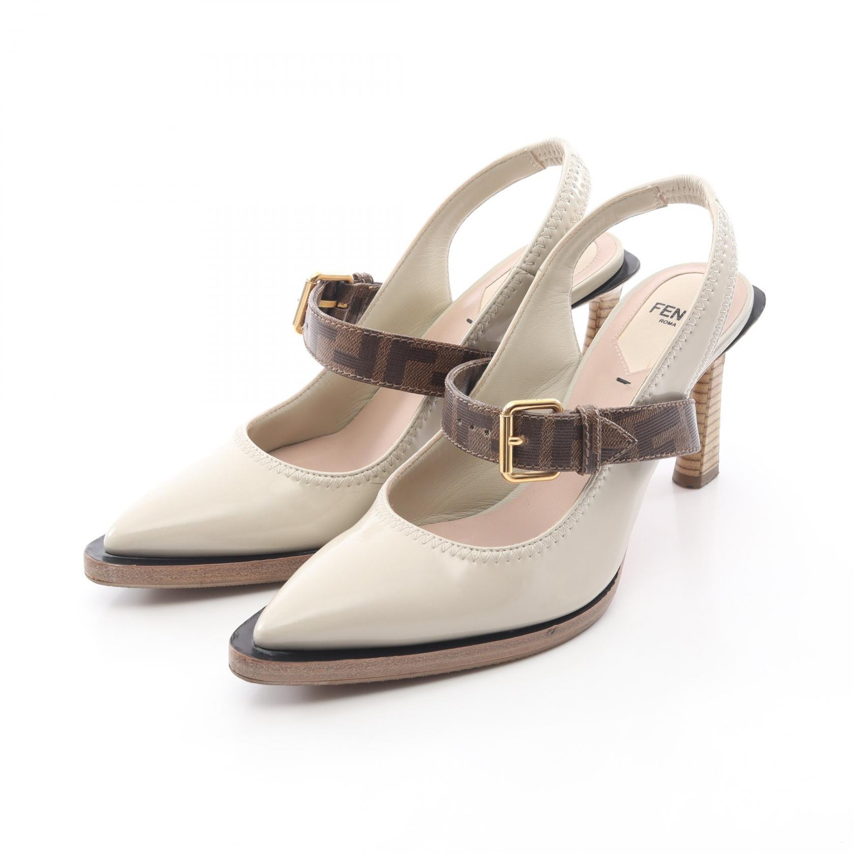 フェンディ FENDI ズッカ ストラップ サンダル 靴 パテントレザー レディース アイボリー系 / ブラウン系 【中古】