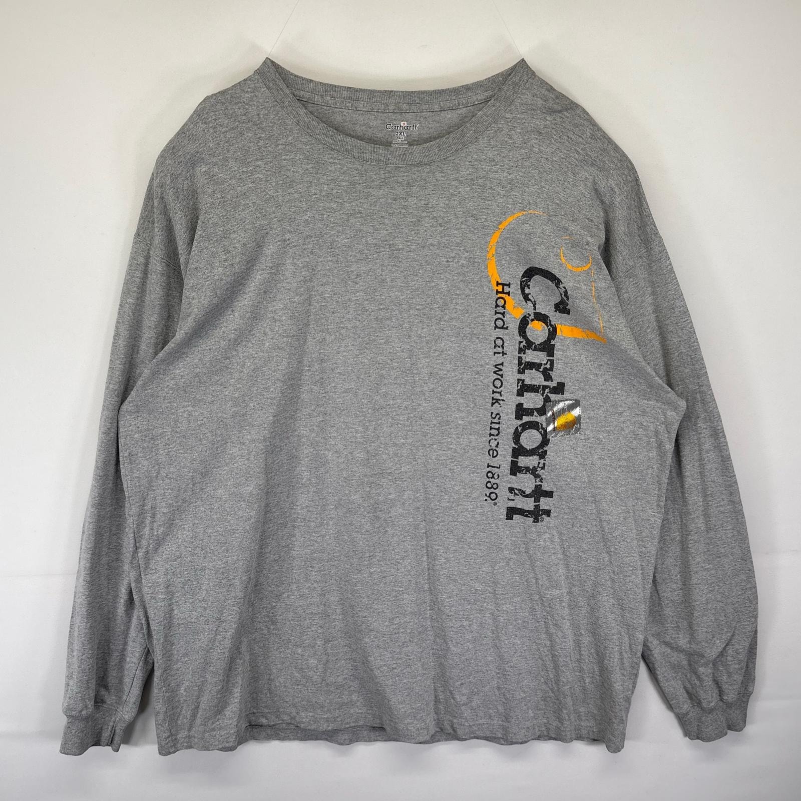 古着 カーハート Carhartt 長袖Tシャツ 袖ロゴプリント クルーネック 大きいサイズ ロンT 2XLTALL グレー メンズ