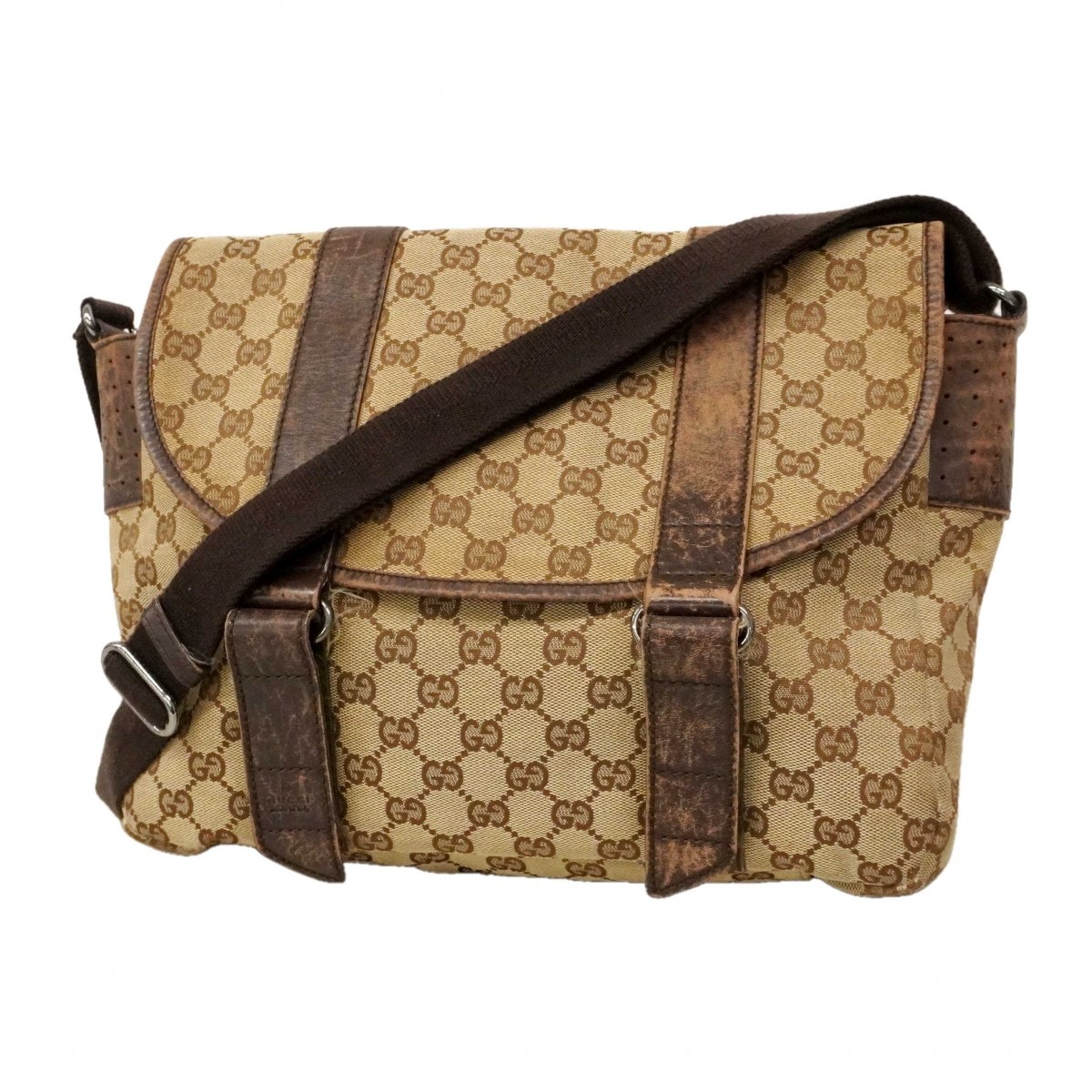 ★SALE【6dc2540】グッチ ショルダーバッグ GGキャンバス 145859 キャンバス ベージュ ブラウン シルバー金具【中古】メンズ