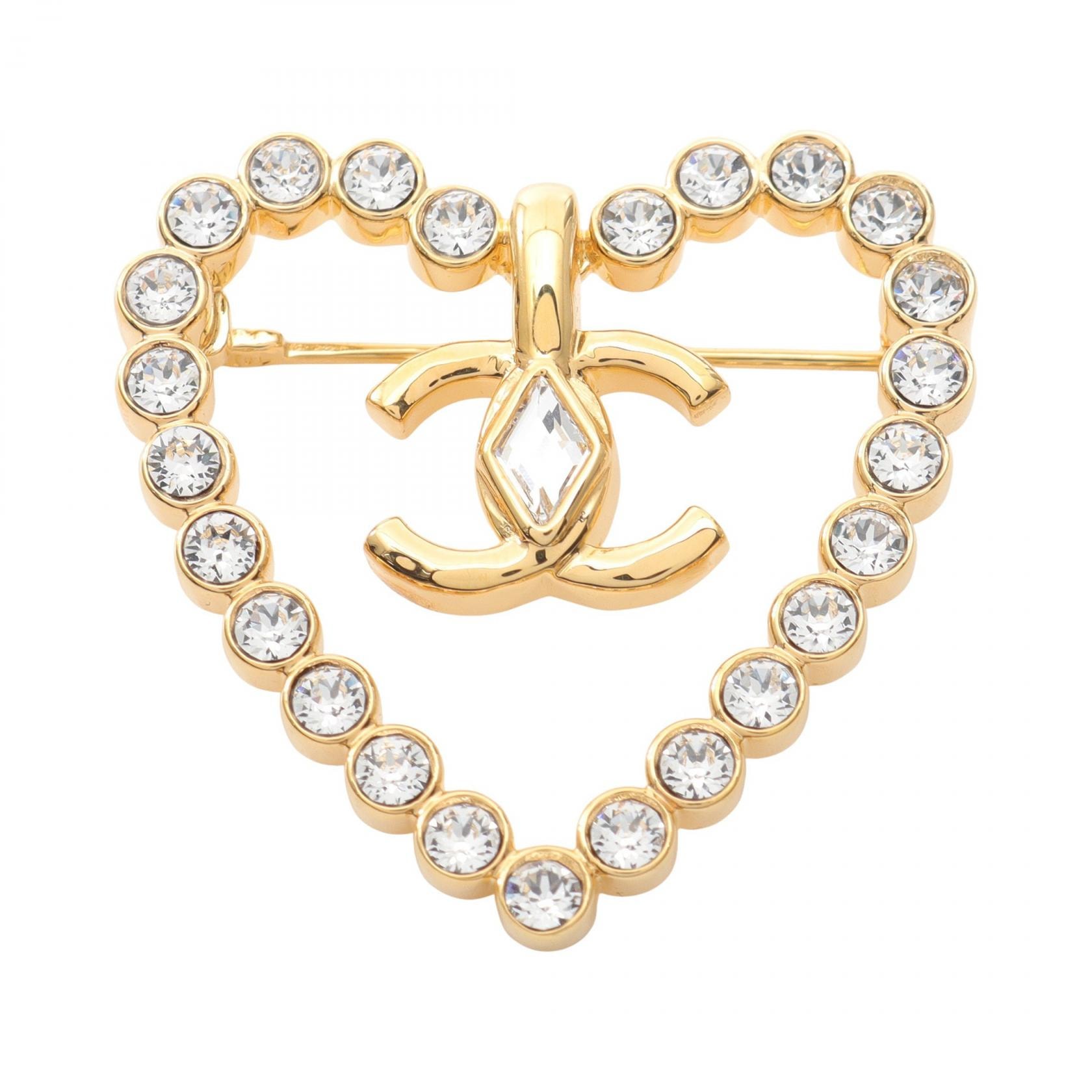 シャネル CHANEL ココマーク ハート ブローチ アクセサリー GP(ゴールドメッキ) ラインストーン レディース ゴールド系 / クリア系 【中古】