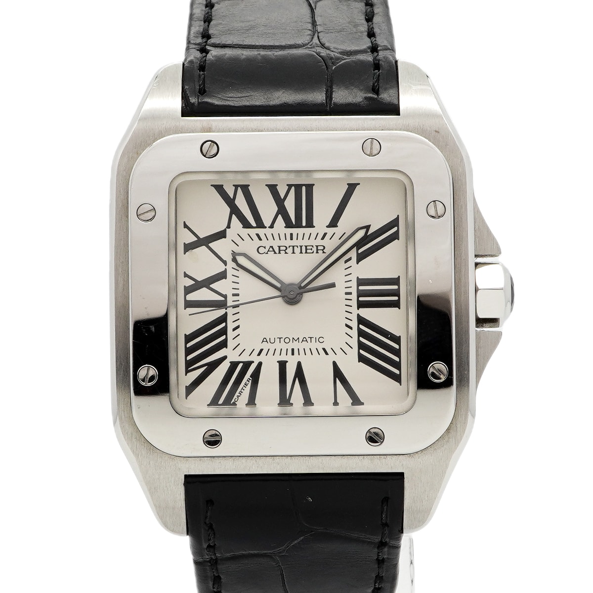 【6wda0055】カルティエ サントス100LM W20073X8 シルバー文字盤【中古】腕時計 メンズ