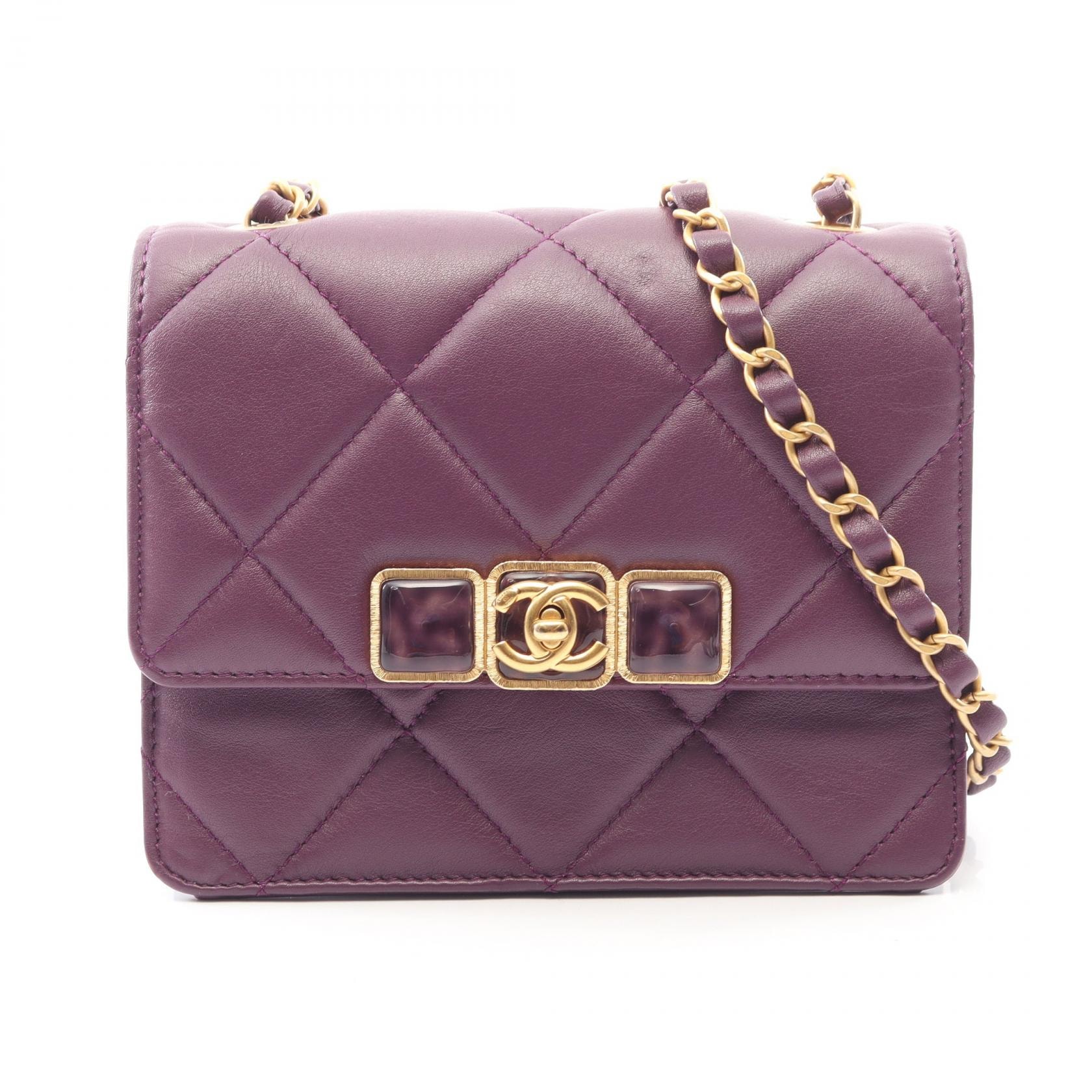 シャネル CHANEL ミニマトラッセ ショルダーバッグ バッグ ラムスキン(羊革) レディース パープル系 AS3391 【中古】