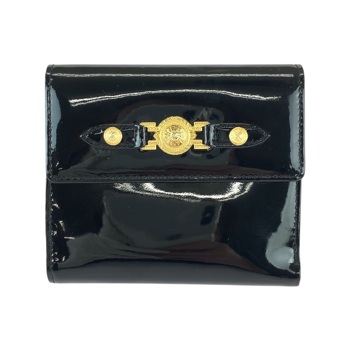 美品 VERSACE ヴェルサーチ サンバースト ブラック 黒 ゴールド金具 エナメル 折財布 コンパクトウォレット 600056 【中古】