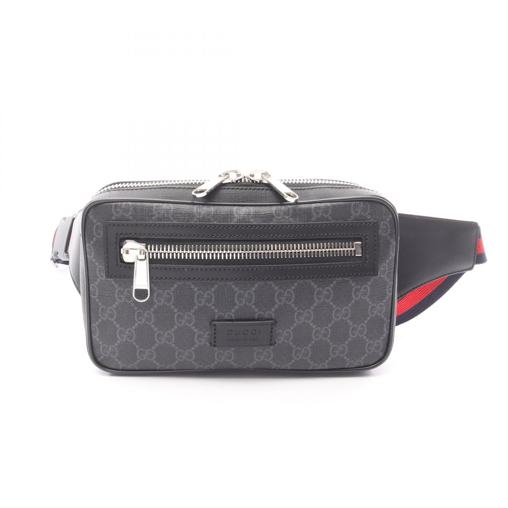 グッチ GUCCI ソフト GGスプリーム シェリーライン ウエストバッグ バッグ PVCコーティングキャンバス レザー メンズ ブラック系 474293 【中古】