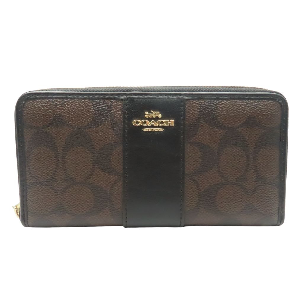 【中古】 コーチ 長財布(ラウンドファスナー) F54630 シグネチャー PVC レザー ダークブラウン ブラック 小物 ジッピー レディース 女性 COACH