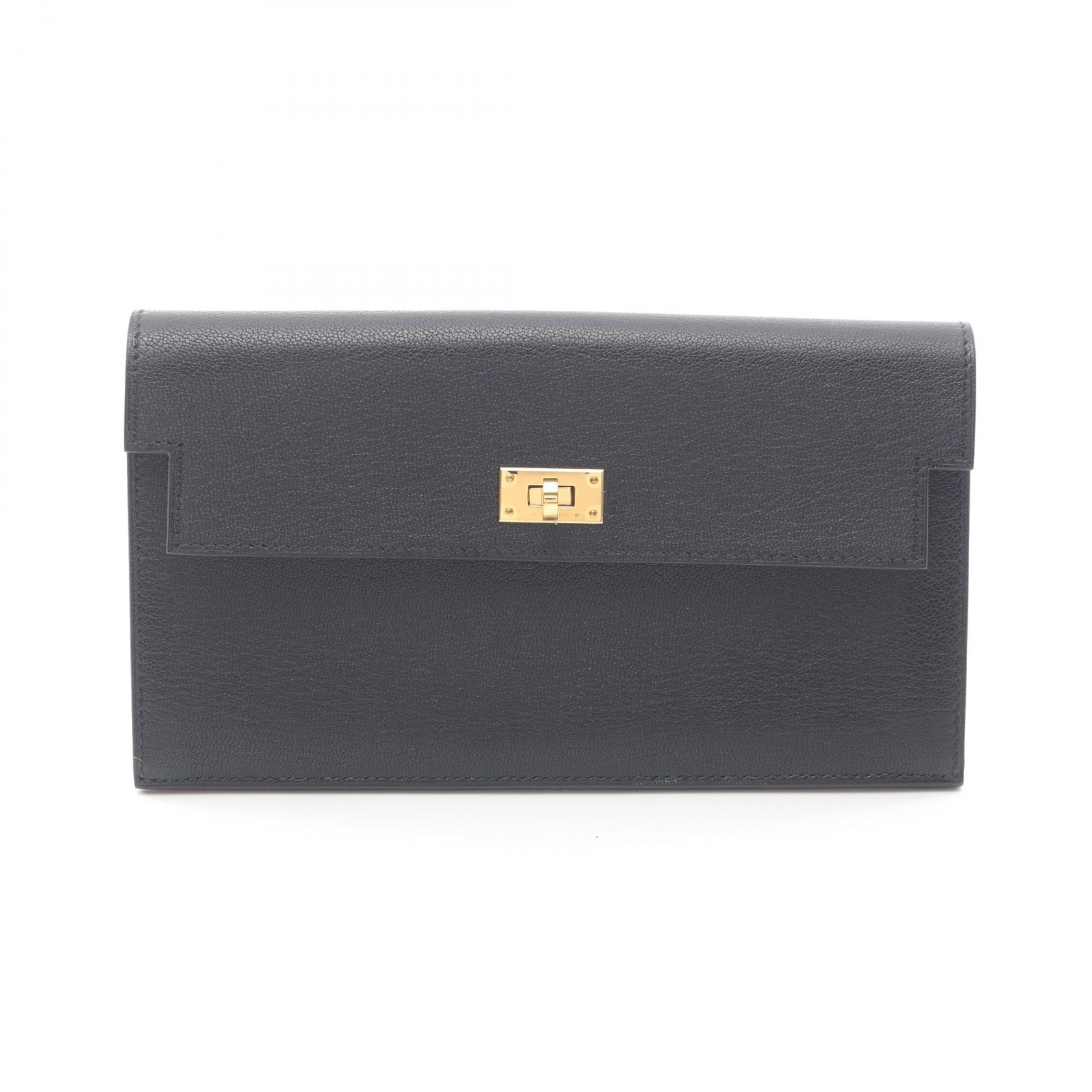 エルメス HERMES ケリーポケット ロング 二つ折り長財布 財布 レザー シェブルシャムキラ W刻印(2024年製造) レディース ブラック系 H085047CC89 【中古】