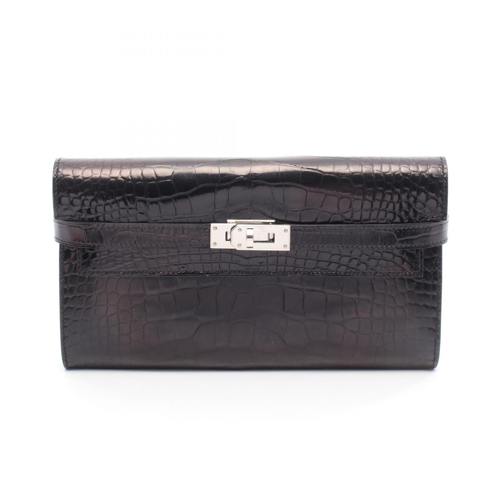 エルメス HERMES ケリーウォレット ロング 二つ折り財布 財布 アリゲーターリセ A刻印(2017年製造) レディース ブラック系 【中古】