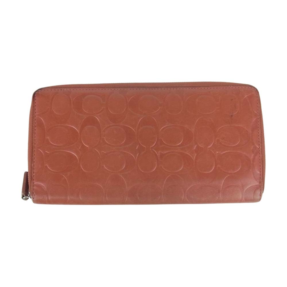COACH コーチ 財布 レザー シグネチャー ロング ウォレット 財布 オレンジ系 朱色系【中古】