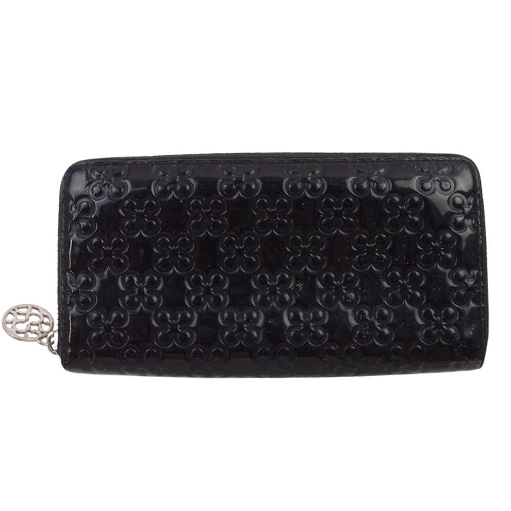 COACH コーチ 財布 パテント エナメル 四つ葉 クローバー 長財布 ラウンド ジップ ウォレット ブラック系【中古】