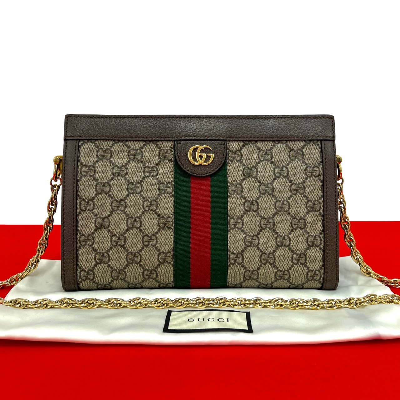 GUCCI グッチ オフィディア シェリーライン GG ロゴ 金具 PVC レザー ショルダーバッグ ブラウン