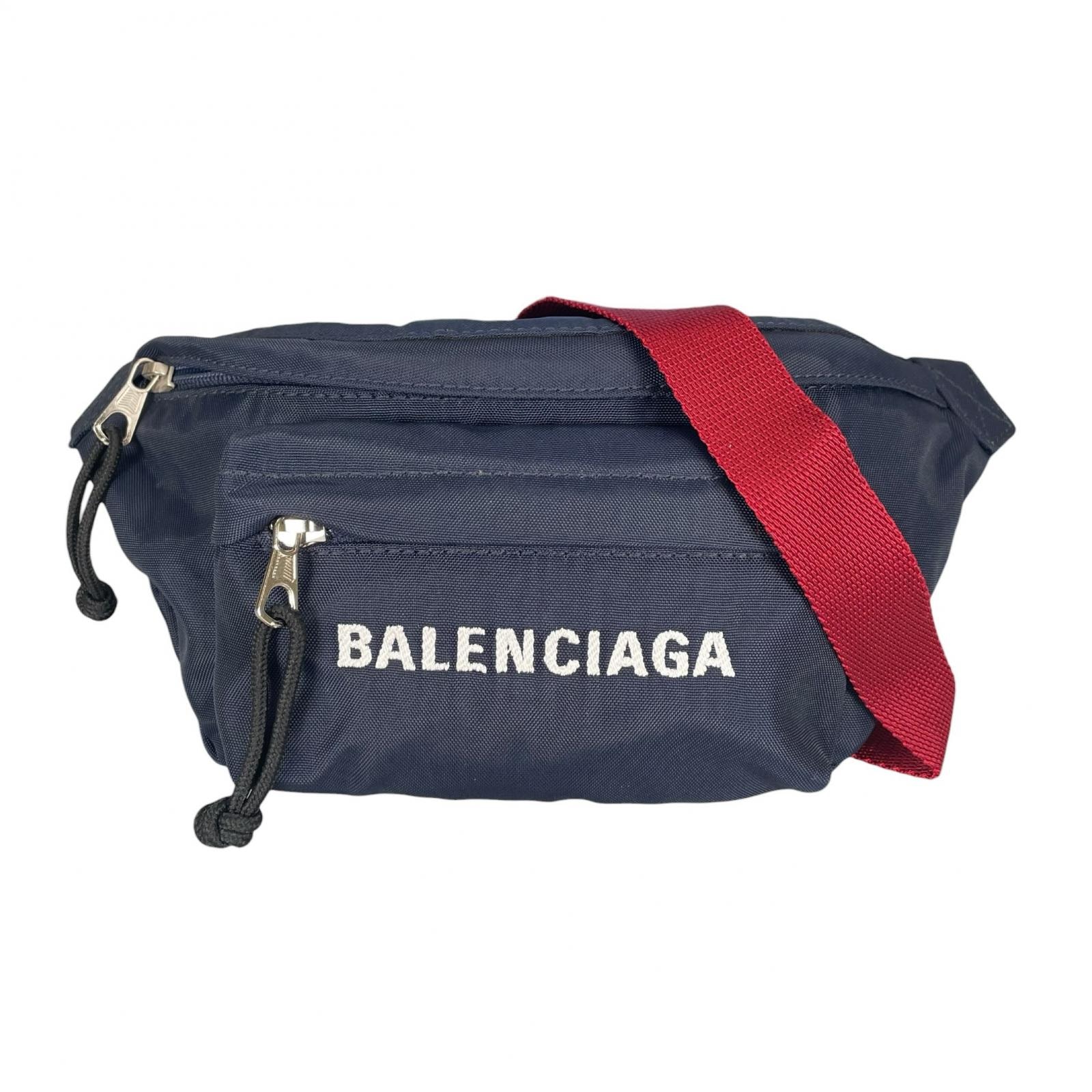 美品 BALENCIAGA バレンシアガ ウィール ベルトバッグ ボディバッグ ナイロン ネイビー メンズ【中古】