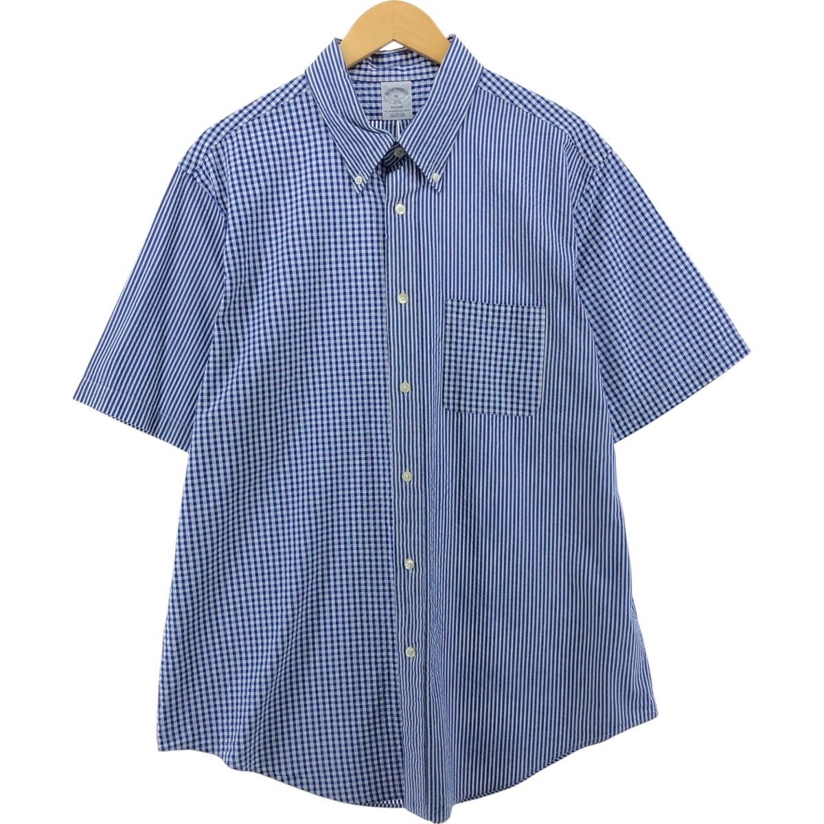 古着 ブルックスブラザーズ Brooks Brothers 1818 REGENT チェック柄 ストライプ柄 シアサッカー クレイジーパターン 半袖 ボタンダウンシャツ メンズXL相当/eaa562955