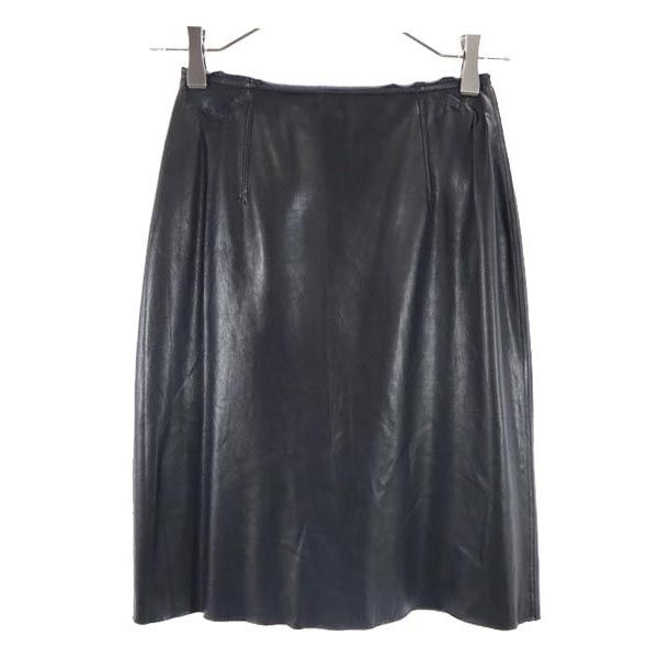 FOXEY NEW YORK フォクシーニューヨーク ミニ丈 フェイクレザー スカート 38 ブラック系 バックジップ
