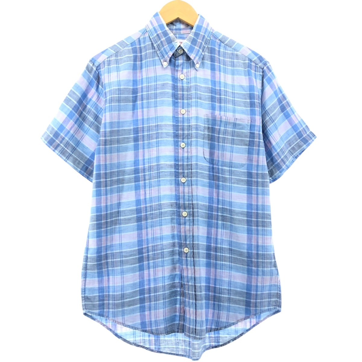 古着 ブルックスブラザーズ Brooks Brothers Est.1818 チェック柄 ボタンダウン 半袖 リネンシャツ メンズS相当/eaa553970