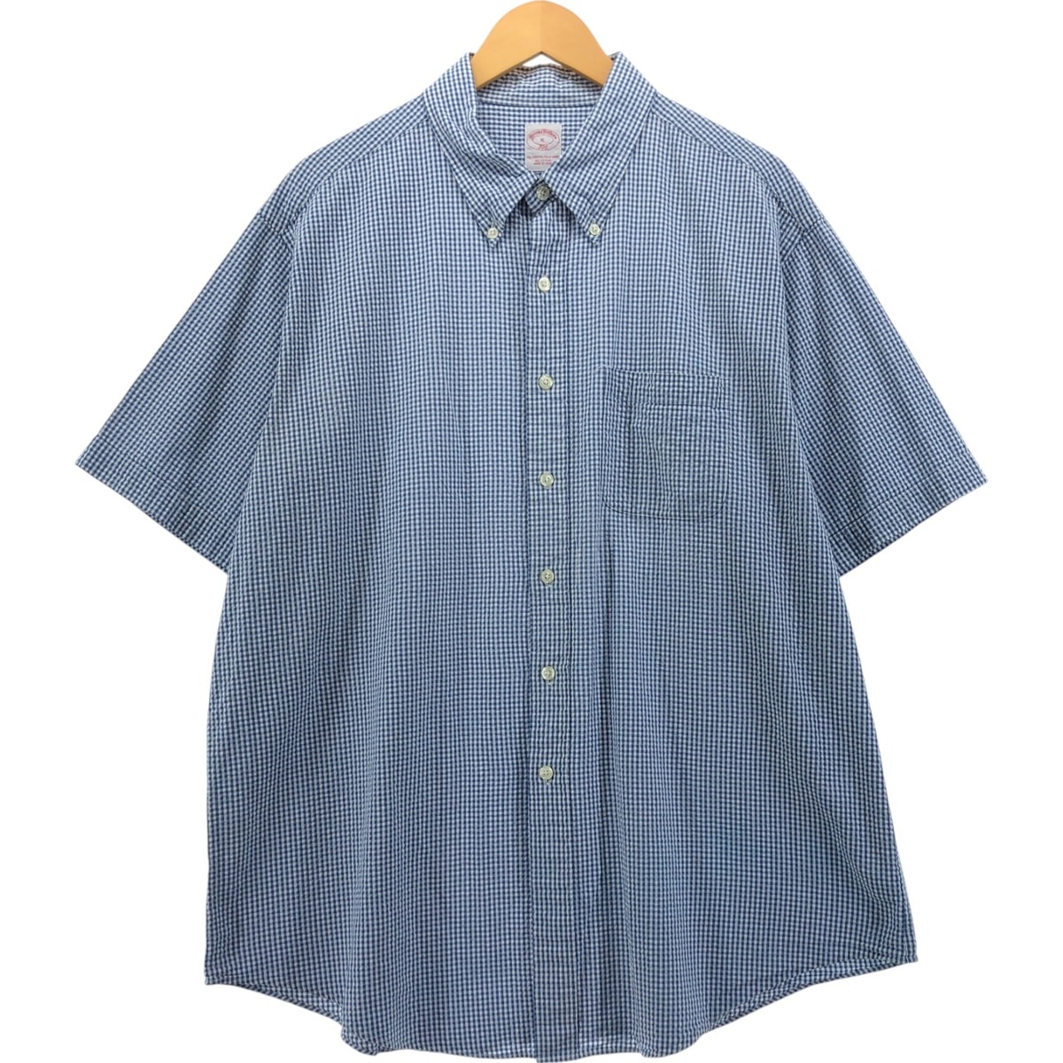 古着 ブルックスブラザーズ Brooks Brothers 1818 REGENT ギンガムチェック シアサッカー 半袖 ボタンダウン チェックシャツ メンズXL相当/eaa553887