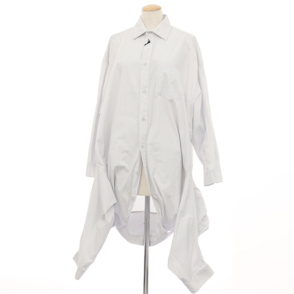 【中古】バレンシアガ BALENCIAGA コットン ストライプ カジュアルシャツ ライトブルーxブラック【サイズ1】【レディース】