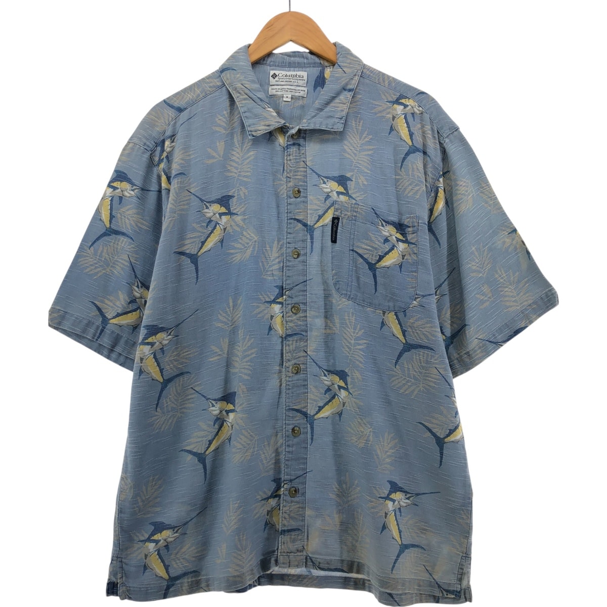 古着 90~00年代 コロンビア Columbia 総柄 魚柄 ボックスシャツ 半袖 コットンシャツ メンズXS相当/eaa549750