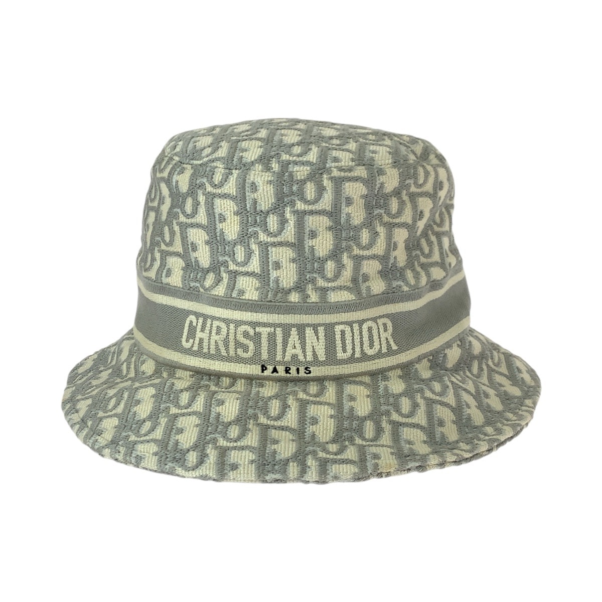 美品 Christian Dior クリスチャンディオール ヴィンテージ トロッター オブリーク ホワイト グレー コットン ハット バケットハット 帽子 600597 【中古】