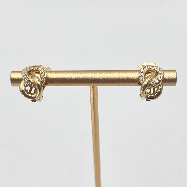 Christian Dior(クリスチャンディオール) ラインストーン ノット ヴィンテージ イヤリング ゴールドカラー ロゴ刻印 直径1.3cm 【中古】