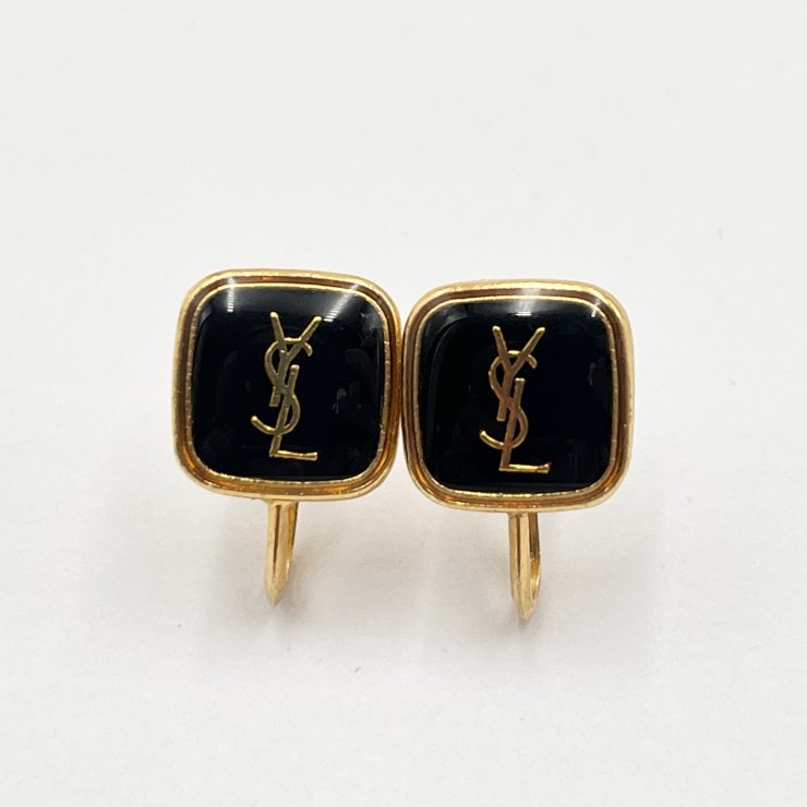 YVES SAINT LAURENT(イヴサンローラン)ヴィンテージ YSLロゴ イヤリング ブラック ゴールド スクエア レディース 【中古】
