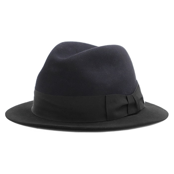 SALE【美品】HERMES エルメス ラビットフェルトハット メンズ レディース ユニセックス サイズ 58 グログランリボン シグネチャー ロゴ クルードセル セリエ チャーム バイカラー 帽子 ネイビー ブラック 黒 紺 イタリア製
