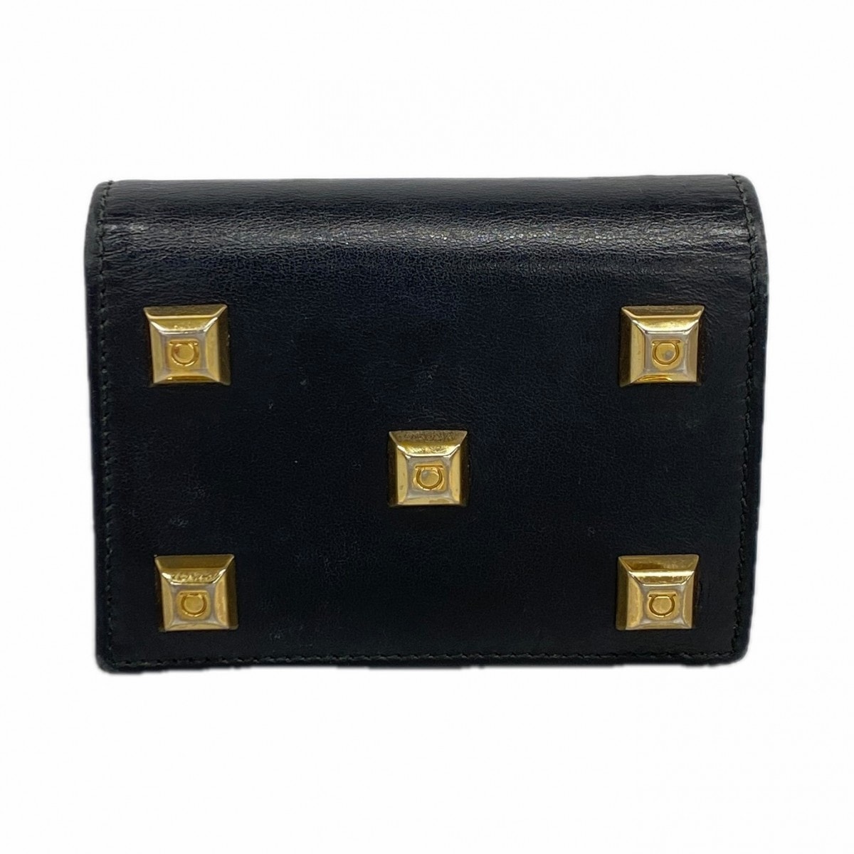 【6cd5278】サルヴァトーレフェラガモ 財布 ガンチーニ レザー ブラック シャンパンゴールド金具【中古】レディース