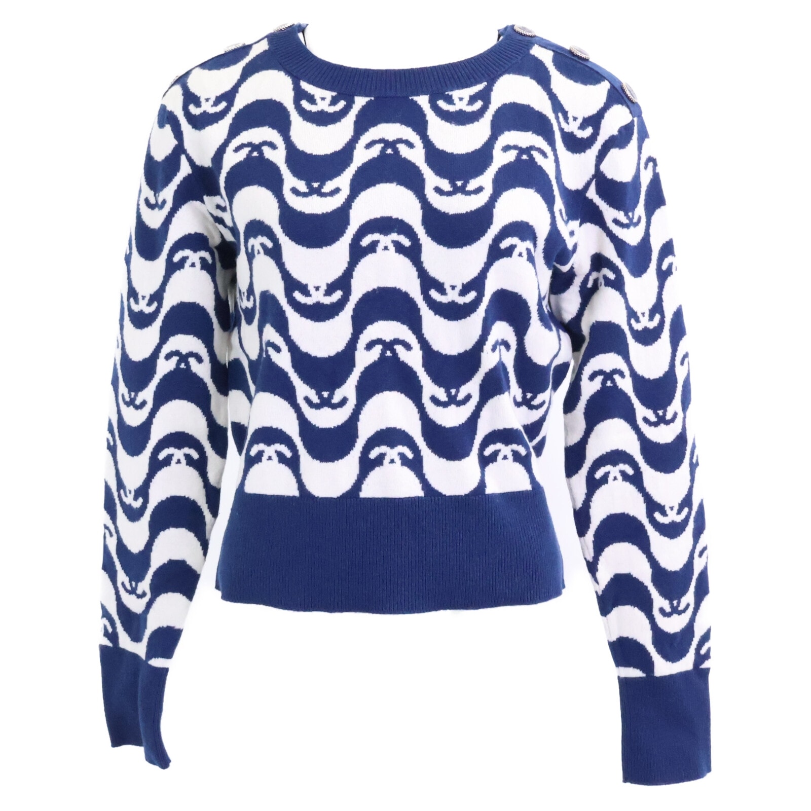 シャネル 【国内正規】21年製 P70436K10043 総柄 ココマークボタン ニットセーター 36