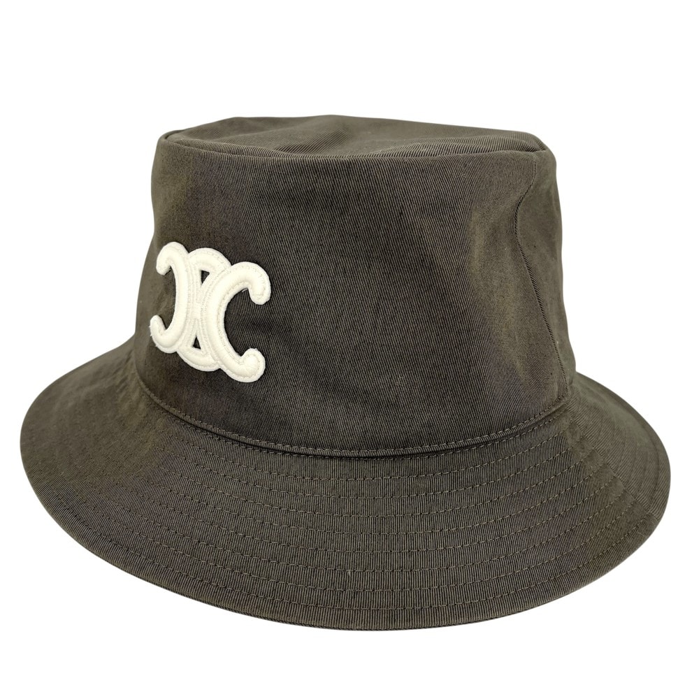 CELINE セリーヌ 帽子 トリオンフ バケットハット ファッションアイテム Sサイズ 2AUE5968P コットン カーキ ユニセックス 美品【中古品】