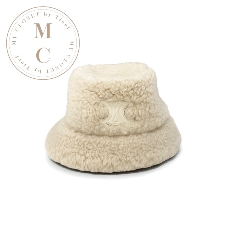 セリーヌ CELINE 帽子 カシミア ベージュ トリオンフ ロゴ バケットハット
