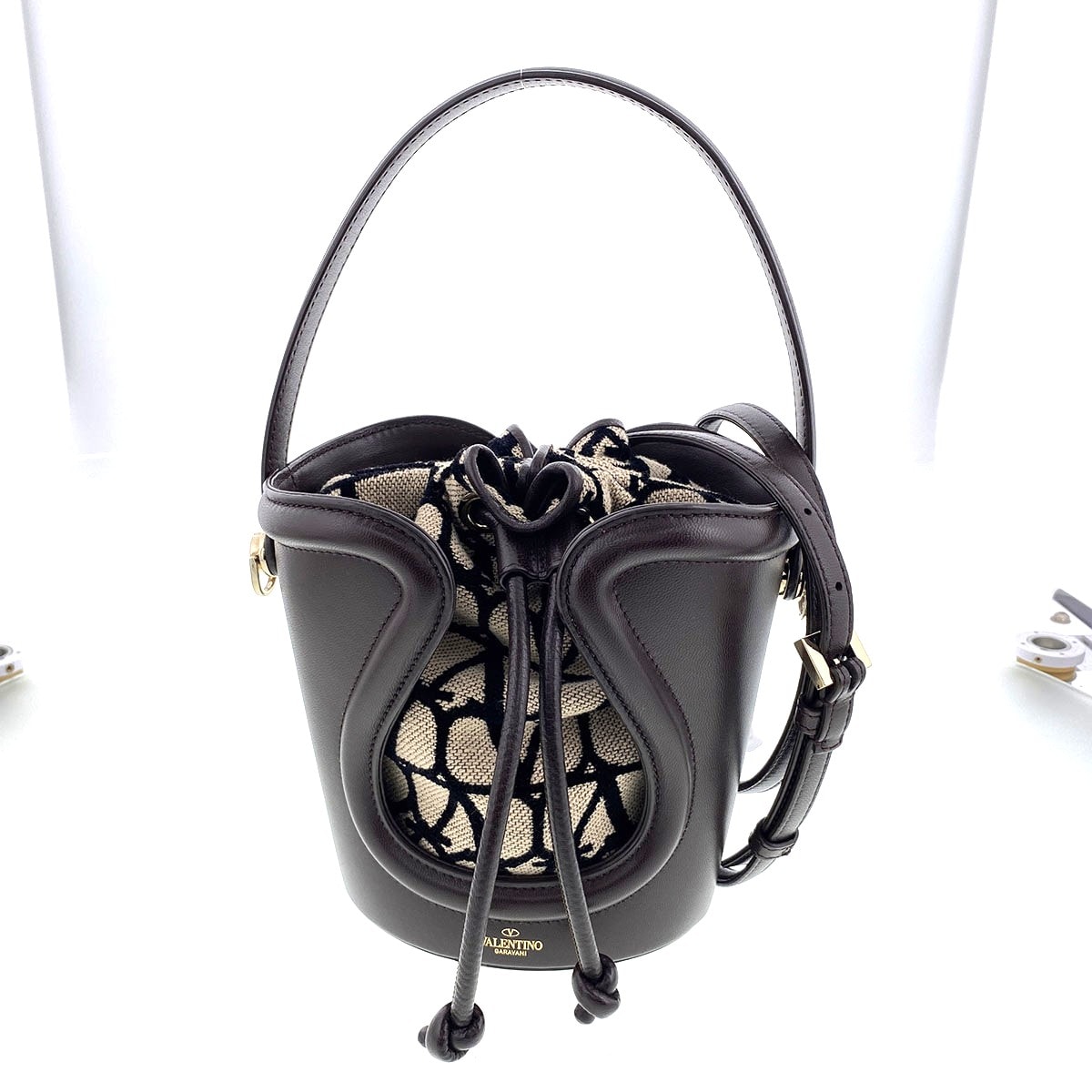 VALENTINO ヴァレンティノ トワル イコノグラフ バケットバッグ ショルダーバッグ ゴートスキン ブラウン ベージュ レディース【中古】