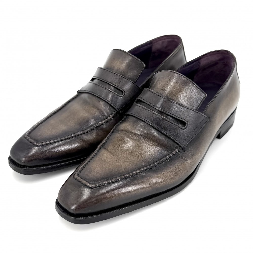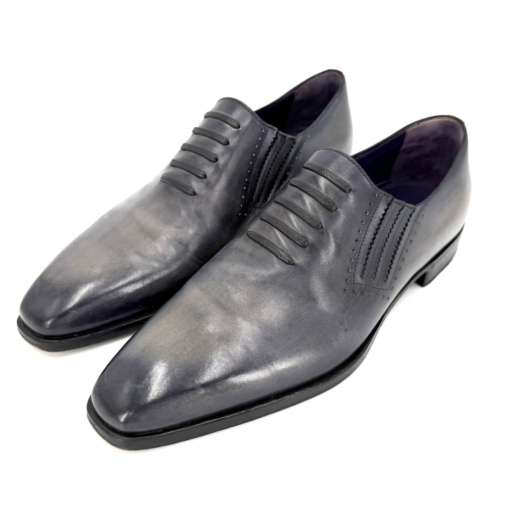 Berluti ベルルッティ ローファー デムジュール トロンプルイユ 革靴 サイドエラスティック レザー グレー メンズ【中古品】