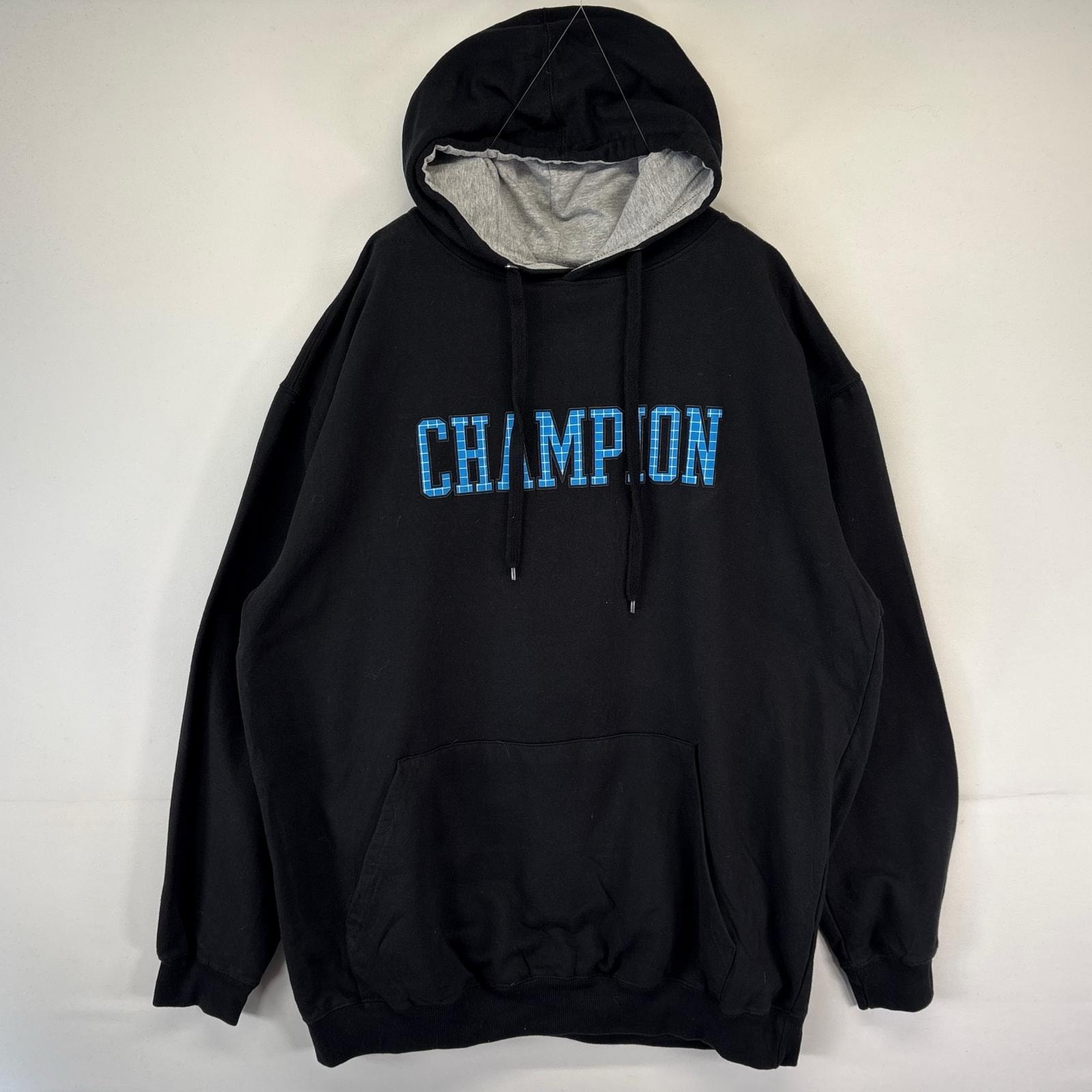 古着 チャンピオン Champion パーカー スウェット ロゴプリント 大きいサイズ プルオーバー フーディ 2XLT ブラック メンズ
