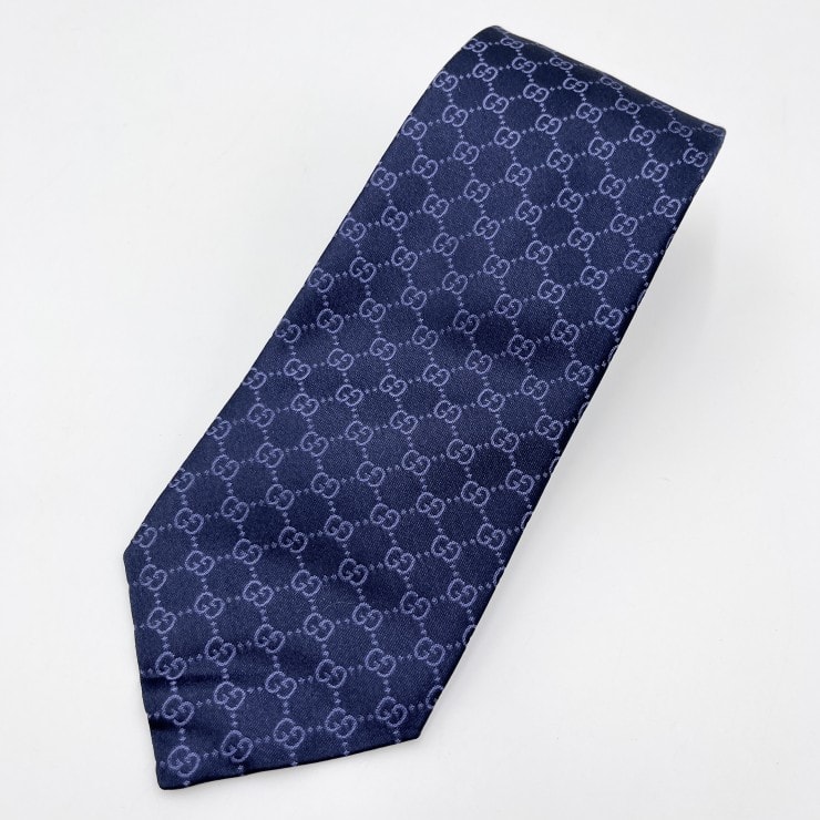 GUCCI(グッチ)GGパターン シルク ネクタイ 総柄 ネイビー メンズ 456520 48002【中古】