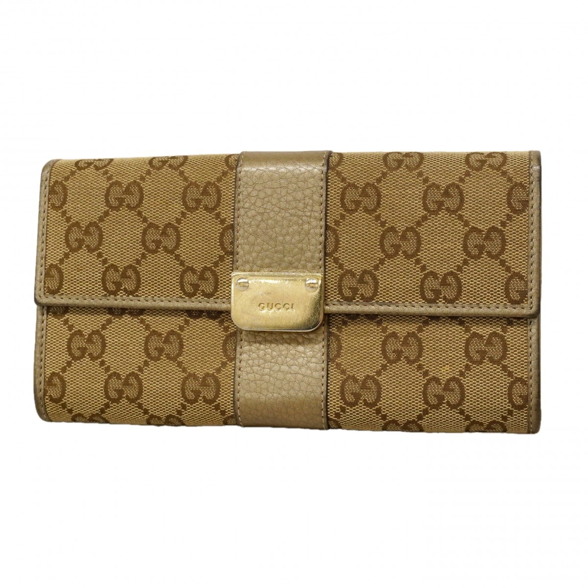 ★SALE【6db1208】グッチ 長財布 GGキャンバス 233028 キャンバス ベージュ ゴールド金具【中古】レディース