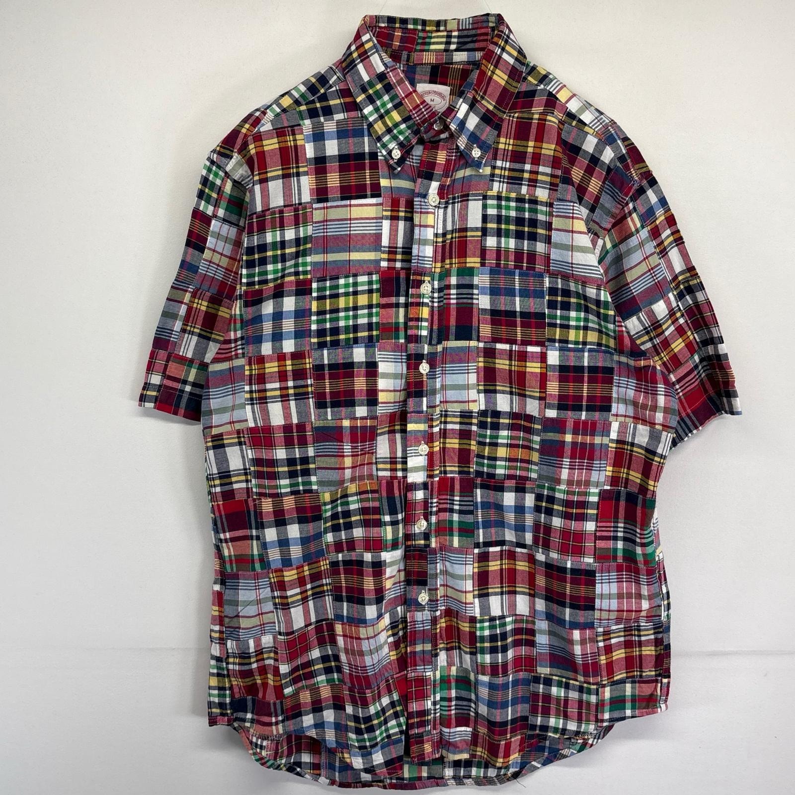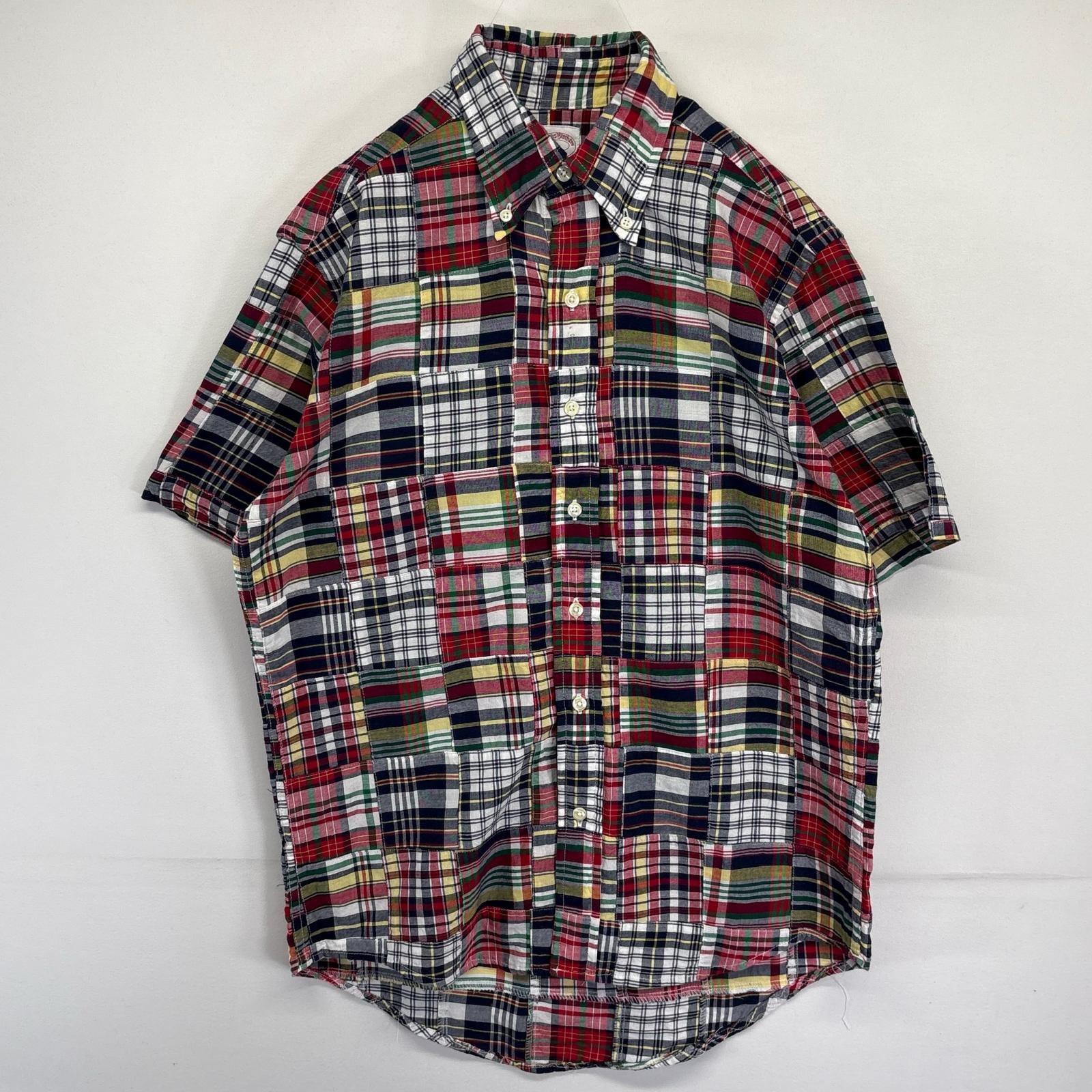 古着 ブルックスブラザーズ Brooks Brothers 半袖シャツ パッチワーク 346 ボタンダウン チェック柄 M マルチカラー メンズ