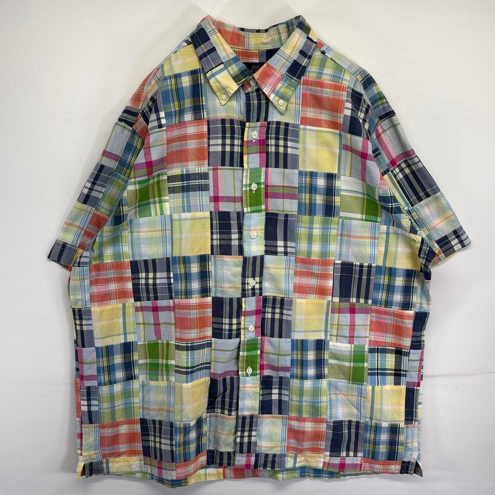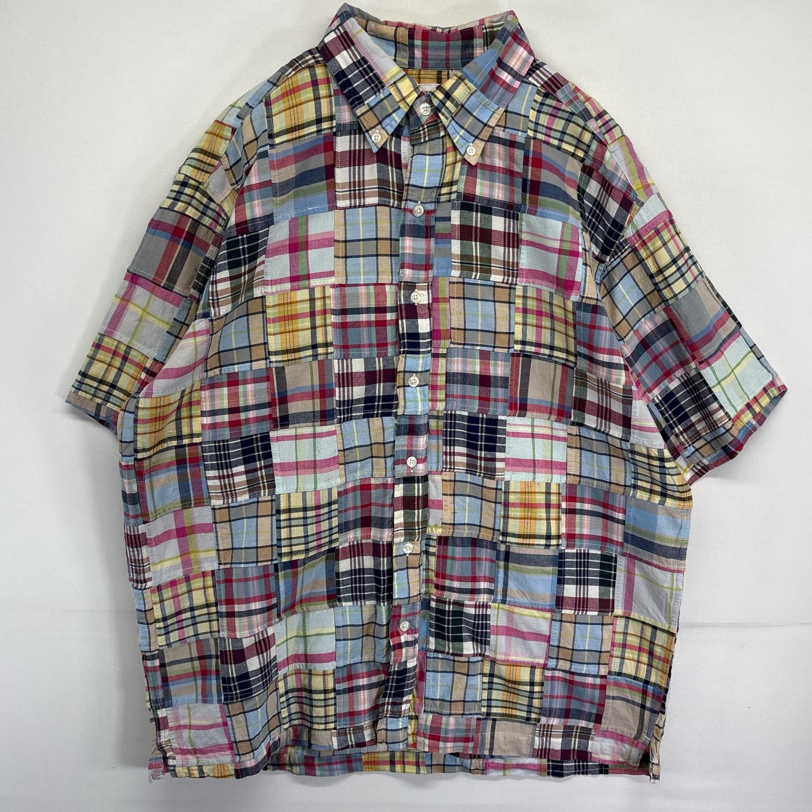古着 ブルックスブラザーズ Brooks Brothers 半袖シャツ パッチワーク ボタンダウン 346 チェック XL マルチカラー メンズ