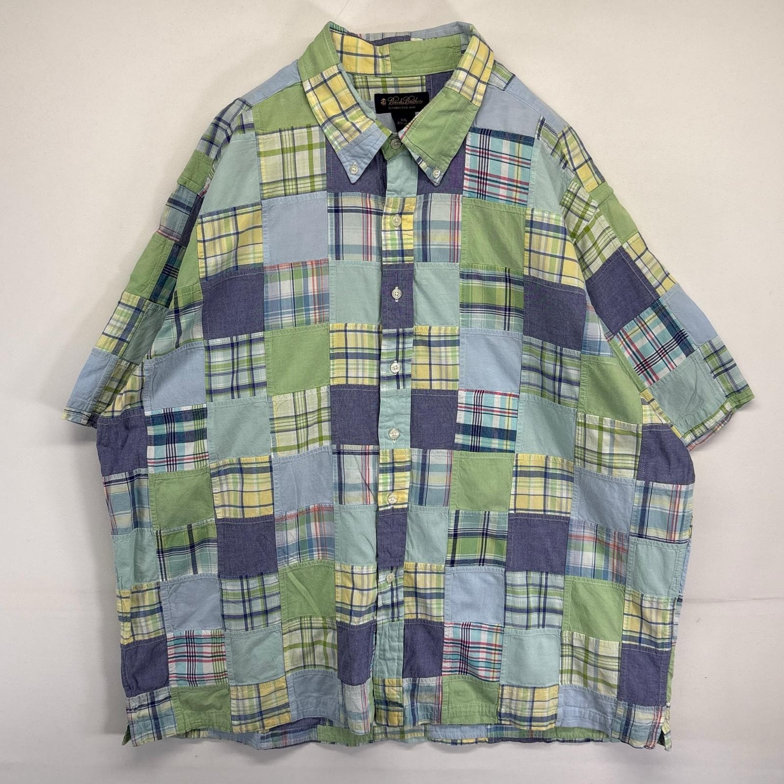 古着 ブルックスブラザーズ Brooks Brothers 半袖シャツ パッチワーク チェック柄 ボタンダウン 2XL マルチカラー メンズ
