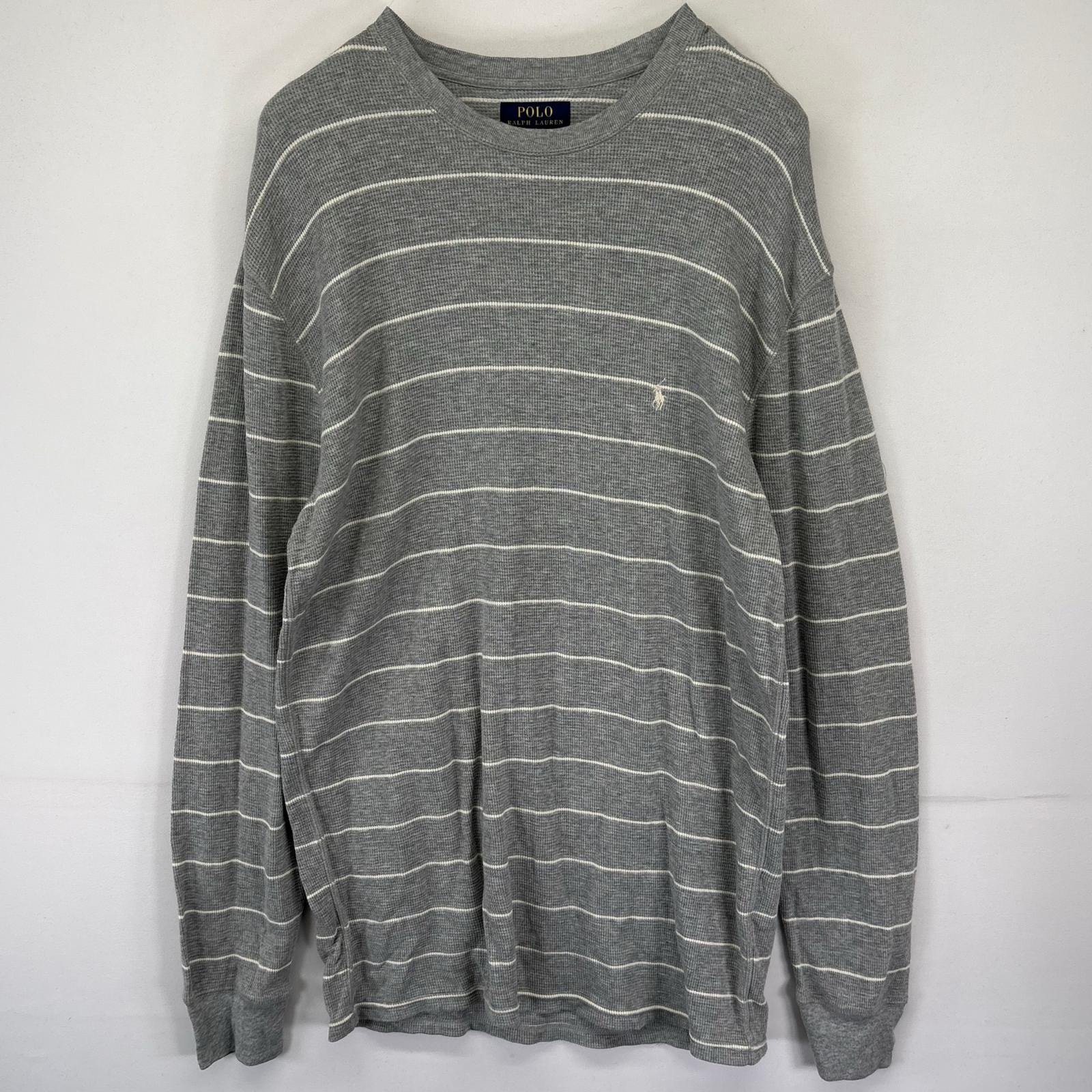 古着 ポロ・ラルフローレン POLO RALPH LAUREN 長袖Tシャツ サーマル ボーダー ワンポイントロゴ刺繍 XL グレー メンズ