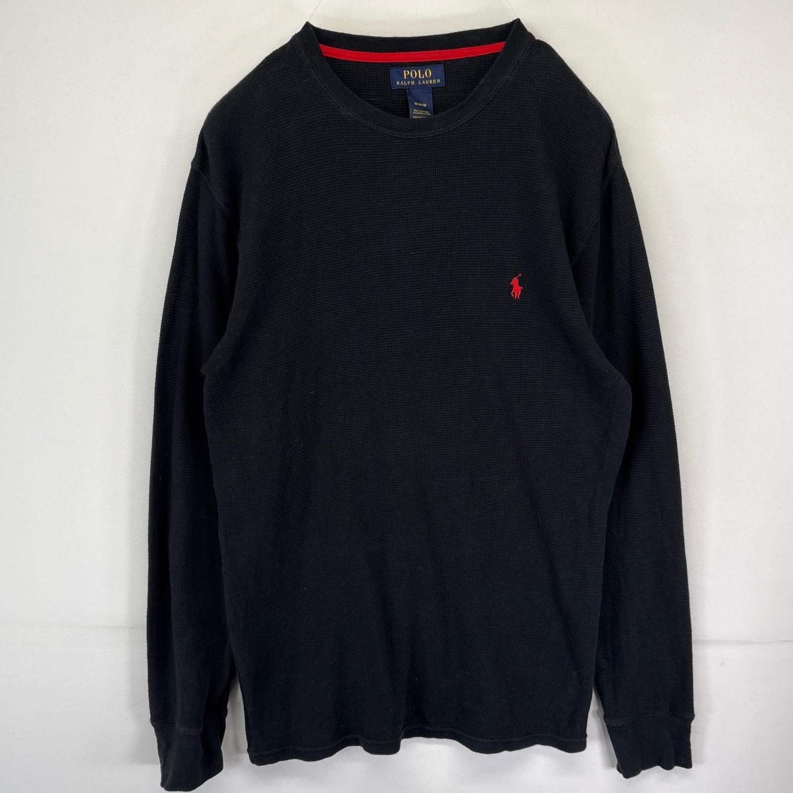 古着 ポロ・ラルフローレン POLO RALPH LAUREN 長袖Tシャツ サーマル ワンポイントロゴ刺繍 クルーネック M ブラック メンズ
