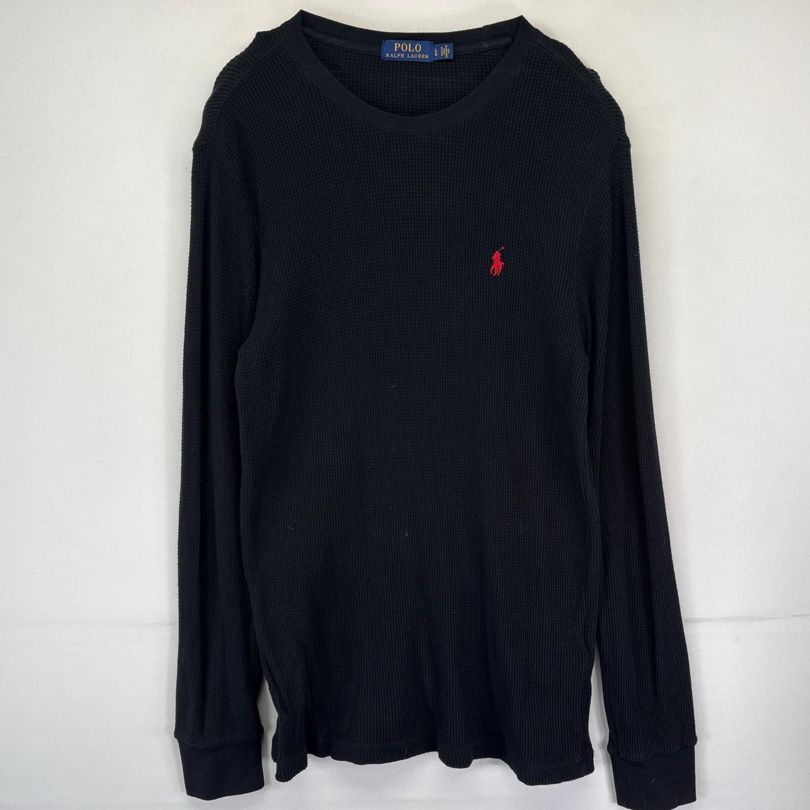 古着 ポロ・ラルフローレン POLO RALPH LAUREN 長袖Tシャツ サーマル ワッフル クルーネック ワンポイント XL ブラック メンズ