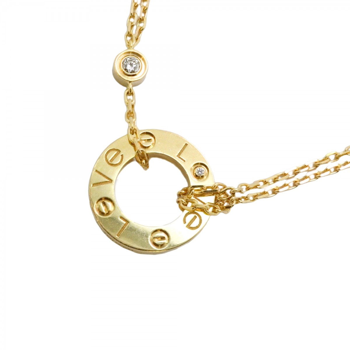 【6jdb0408-10】カルティエ ネックレス ラブサークル 2PD K18YG イエローゴールド ダイヤモンド【中古】レディース