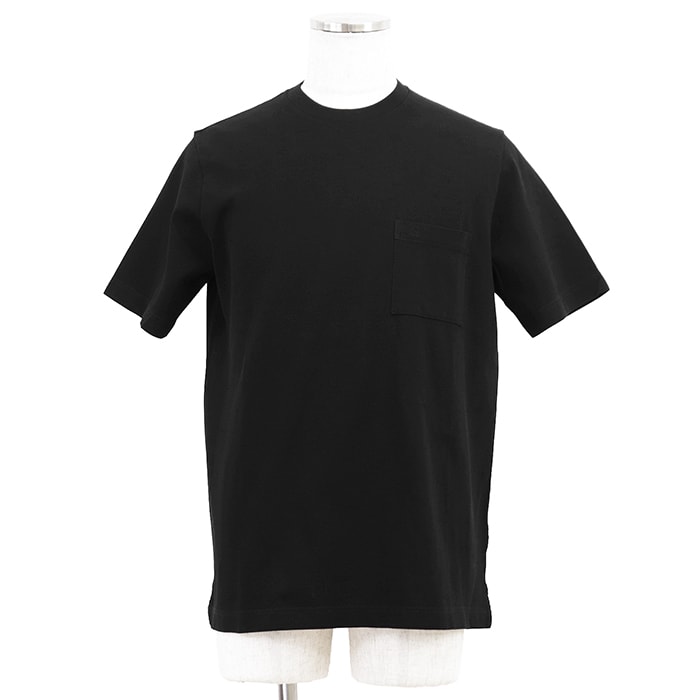 【美品】HERMES エルメス カットソー ポケット刺繍 サイズ L メンズ 鹿の子 Broderie H ロゴ クルーネック ショートスリーブ 丸首 半袖 コットンピケ Tシャツ トップス レシート付属 ブラック 黒 イタリア製